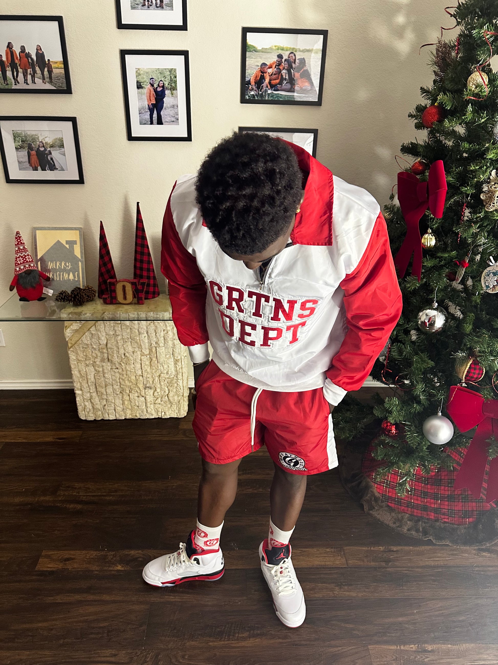 Available in Red or black, each set delivers the perfect mix of sporty design and signature OTMG flavor. The top showcases the standout GRTNS DEPT lettering across the front, while the shorts feature the iconic Greatness Since Birth emblem for a clean, cohesive finish.